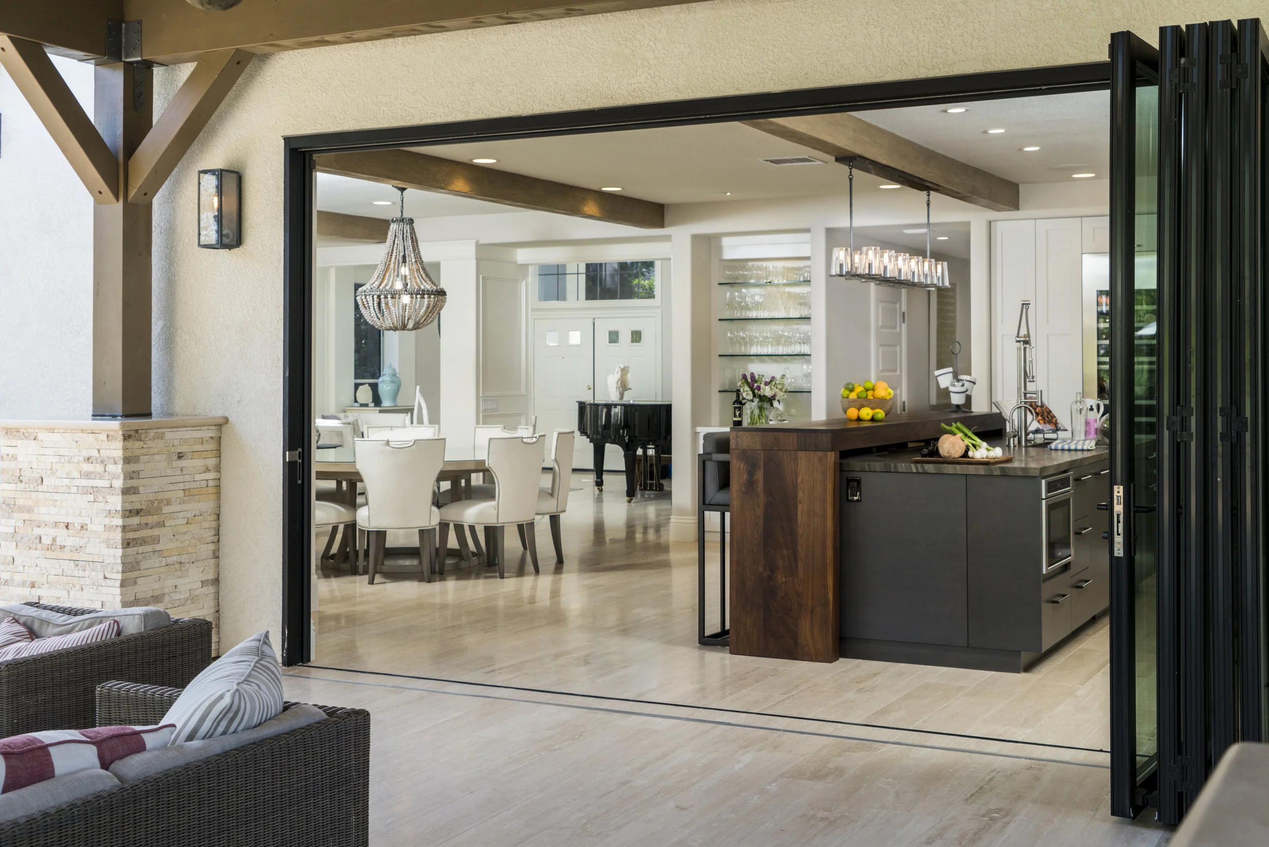 With summer in full swing and people celebrating the wonderful weather here in Southern California, many homeowners are interested in bringing the outdoors in with a bi-folding door system. To help expand your indoor/outdoor experience with a door system, we’ve put together a list of things to consider, as well as the design process you can expect.